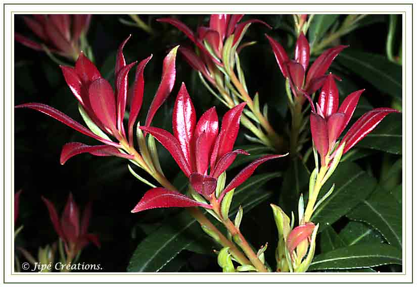Pieris Japonica : un arbuste de la famille des éricacées, au feuillage persistant et mettra des toucvhes de couleur dans votre jardin ou sur votre blalcon.